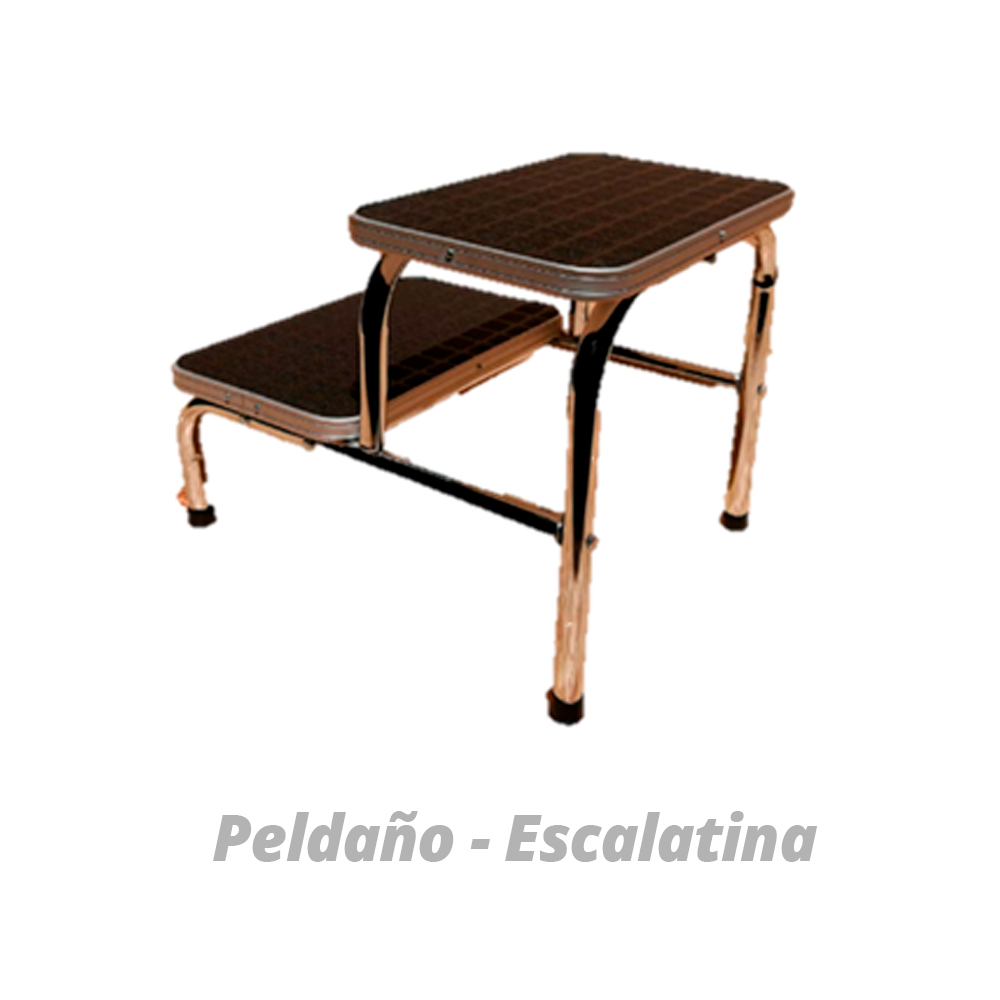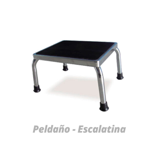 Escalinata de 1 paso fabricado en tubo redondo de 4 soportes, plataforma de melamina de 18 mm con borde de aluminio y piso antideslizante de caucho